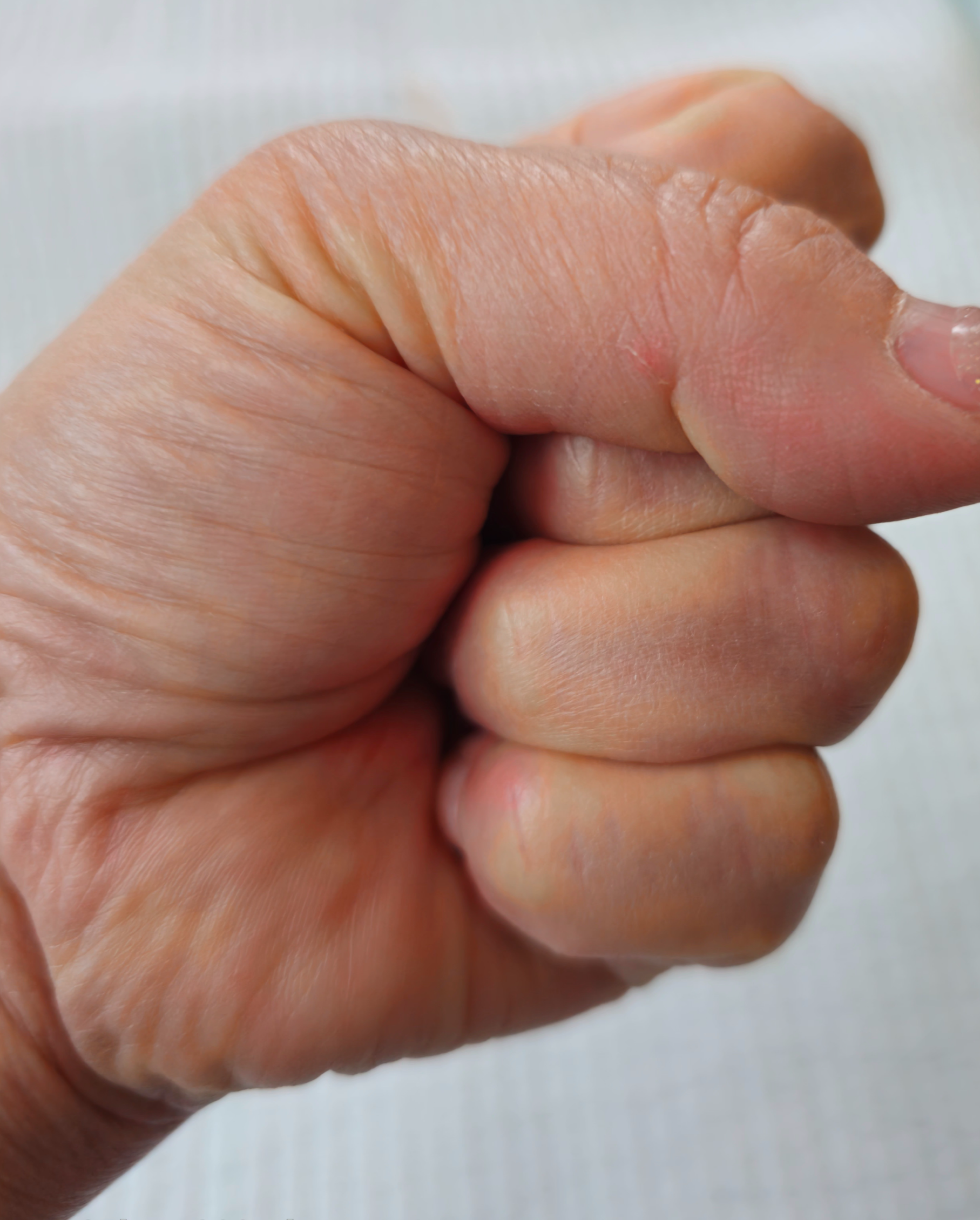 굳은 손가락을 자주 펴고주먹쥐면서 운동