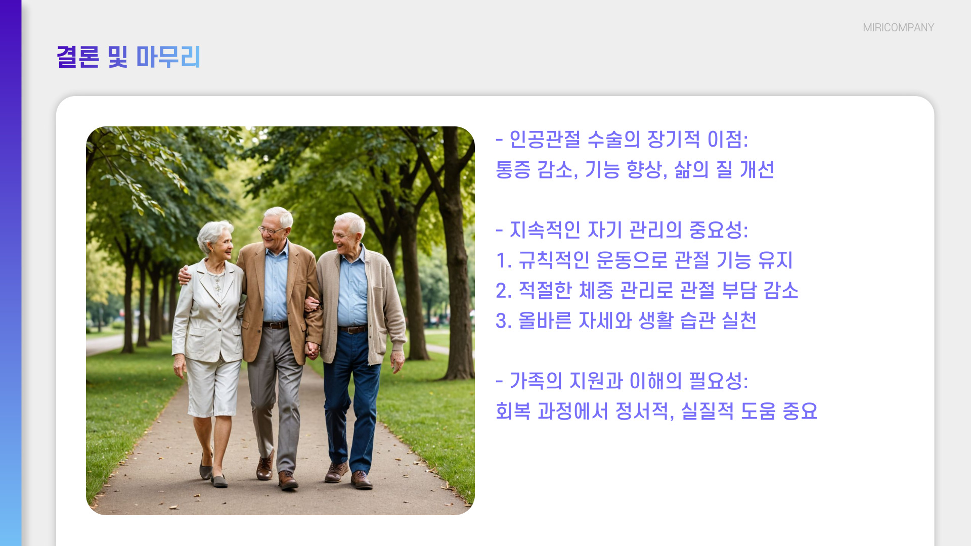무릎 인공관절 수술은 단순히 병원에서 해결되는 문제가 아닙니다.